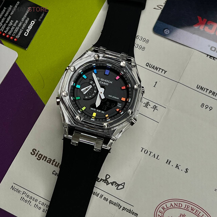 یکی از بهترین ساعت هایی که کمپانی کاسیو تولید می‌کند و از زمانی که ساعت‌های کالکشن جی شاک به بازار معرفی شد ساعت جی شاک مدل GA2100 می باشد، کاسیو برای بار دیگر کاربران خود را به چالش کشید. مدل های جی شاک ، با ظاهر و طراحی مقاوم و منحصر به فرد خود، به محبوبیت بین المللی در بین جوانان رسید. ساعت‌هایی با قدرت ضربه‌پذیری بالا، مقاومت بالا در برابر آب و ضربات محکم که توانست نظر بسیاری از افراد را به خود جلب کند. ساعت مچی جی شاک دارای بند رابر مشکی خاص وموتور باکیفیت ژاپن وبدنه استیل وقاب شیشه ای جذاب است که بهترین انتخاب افراد خاص پسند می باشد.